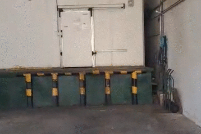 La temperatura promedio entre 1°C y 4°C, la cava se encuentra elevada a 1 metro del piso, sobre una estructura de hierro y concreto. Cava fabricada por METALINOX con puerta corrediza.